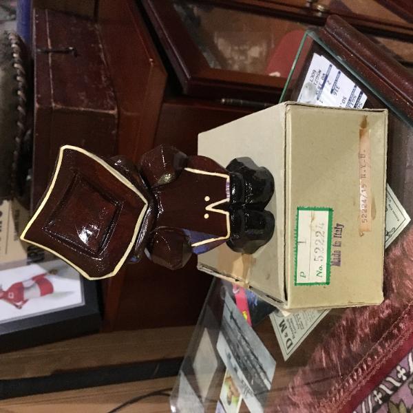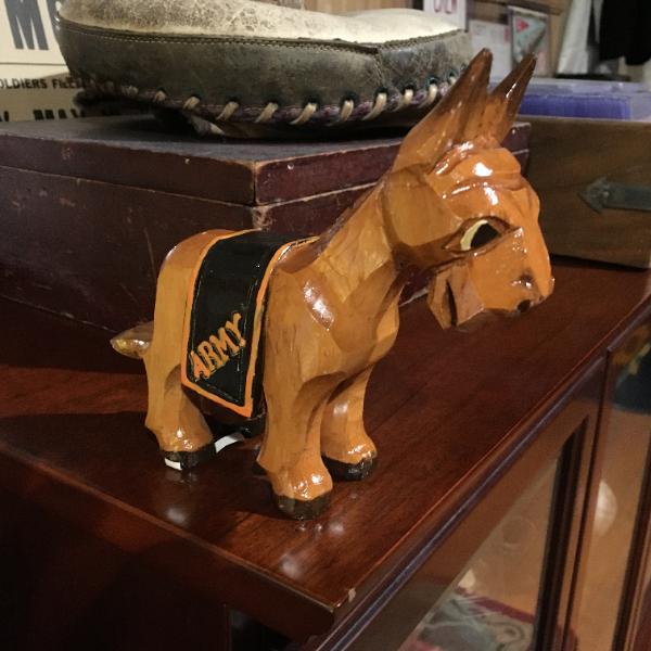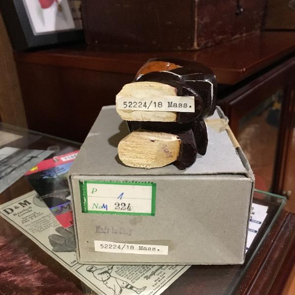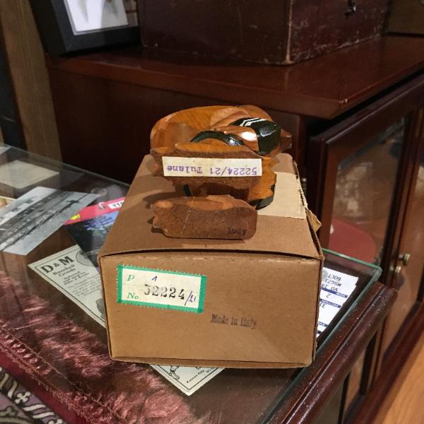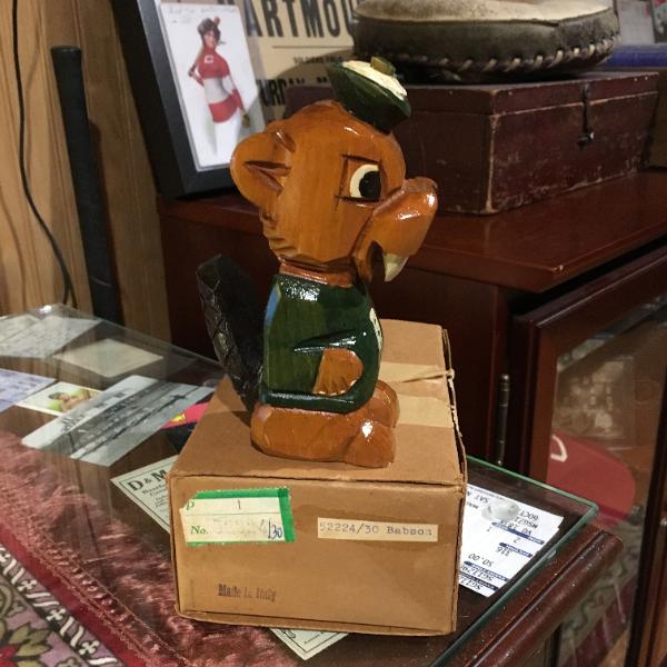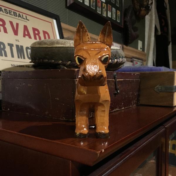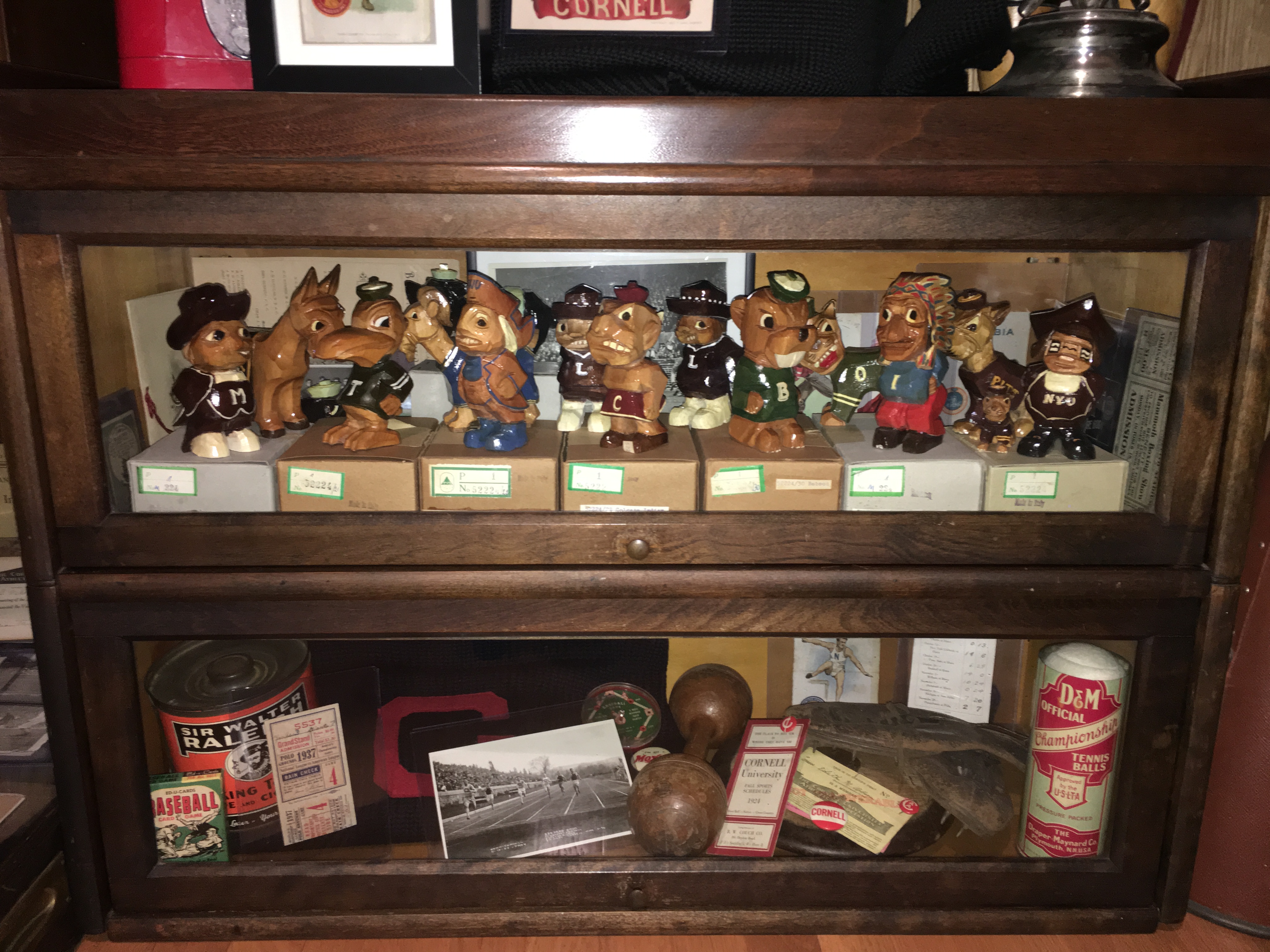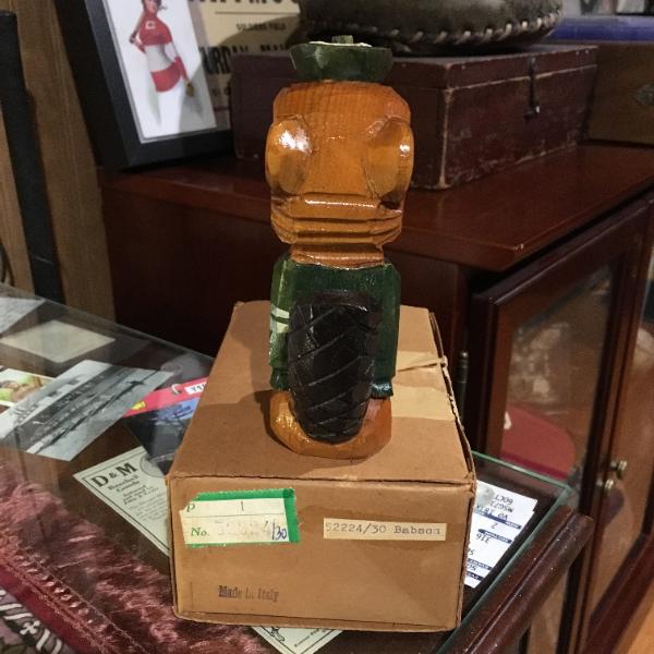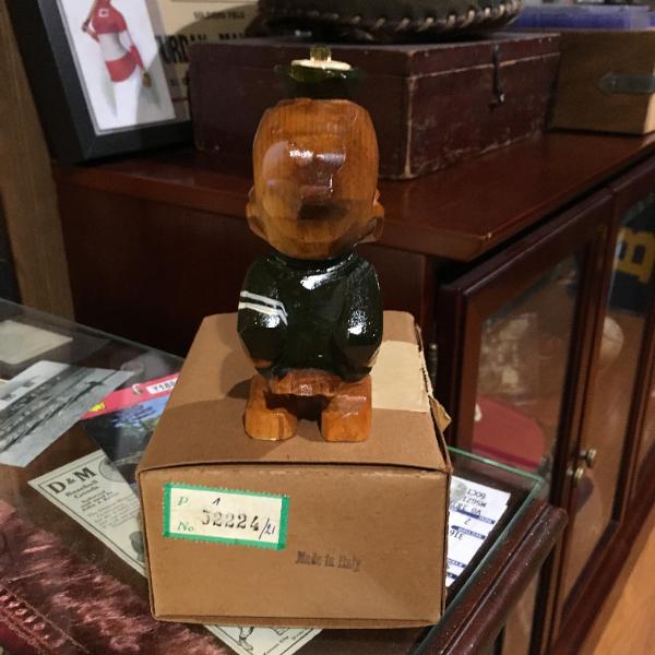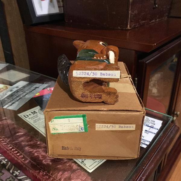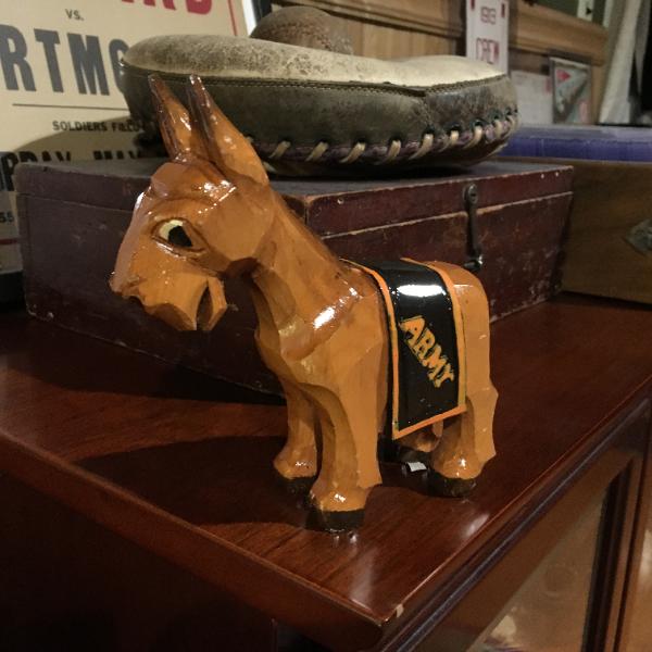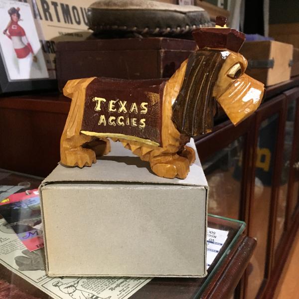 | c.1950 Anri Hand Carved Wood College Mascots - 5 inches Texas A&M, Seton Hall, UMass, Tulane, George Washington, Colgate, Babson, Illinois, NYU, Pitt, Ohio U., Lehigh, Army, Navy, Michigan These Anri Mascots are all NOS coming with the original 1950s boxes and labeling, including the tissue paper packaging and the original paper labels on the feet - all in pristine condition. They all came from old unopened stock discovered in a store in Nantucket. The owner of the store passed and her family liquidated her estate. She had a gift shop on the island of Nantucket. The mascots were in an old out building since the 50s, all new and never opened. The Estate Sale took place in Amesbury, MA, where over 1,500 mascots were sold for $6 a piece! There were 5” mascots, 2.5” and 1.5” mini mascots, letter openers and cork toppers. About a dozen of the Colleges had an abundant amount of Mascots, but there were a few schools with only a handful of examples– Army, Navy, CCNY, Seton Hall, and Manhattan. The rarest mascots were SMU(Pipe Stand), Illinois Wesleyan and Texas A&M, where there were only a couple examples. Some schools were only represented with 5” mascots, while others only had the mini mascots (Cornell, Columbia, Washington & Lee, Penn State). |