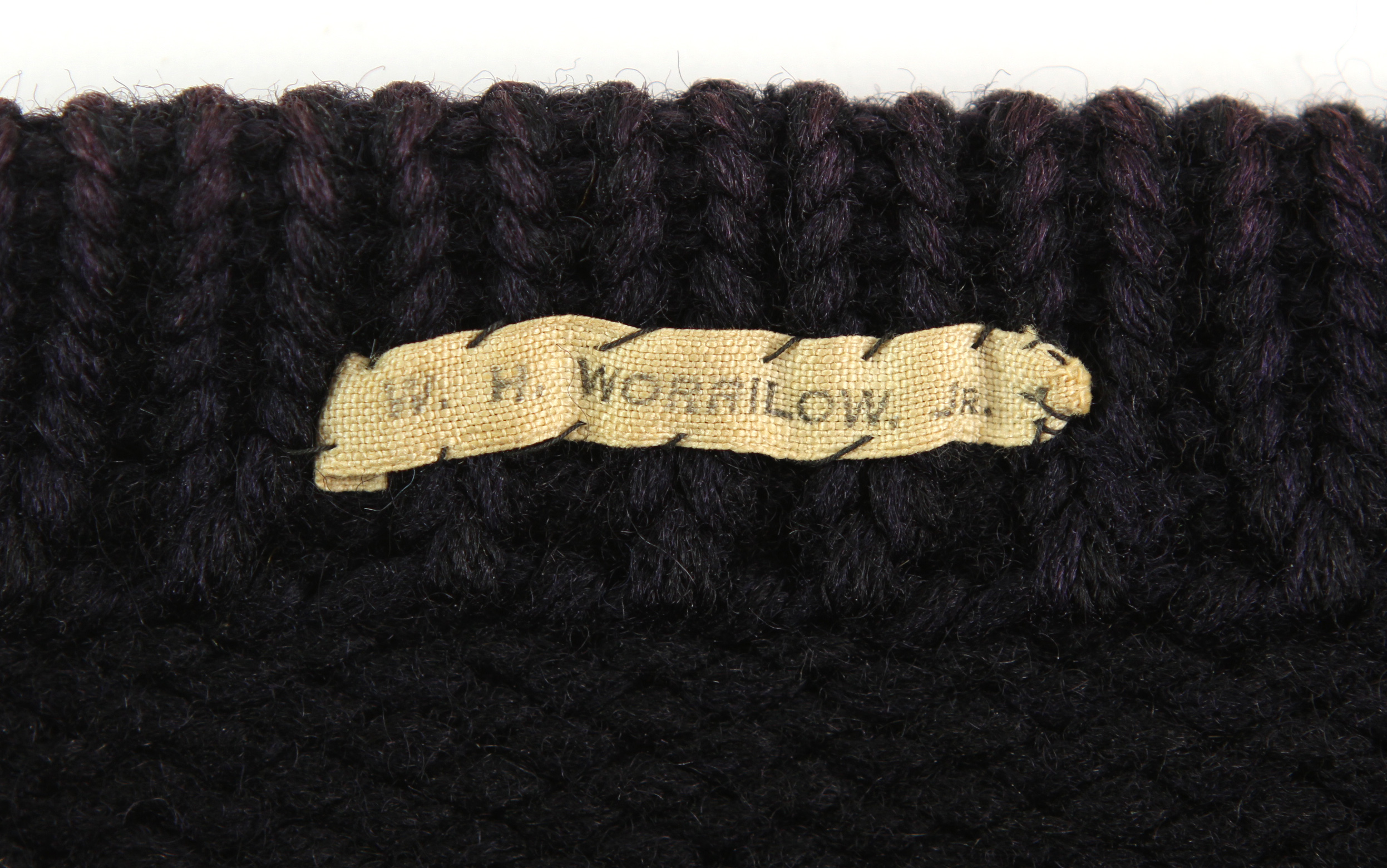 Spalding manufacturer tags sewn to inside tail and collar with an additional tag reading "WH Worrilow Jr" also sewn in the collar.